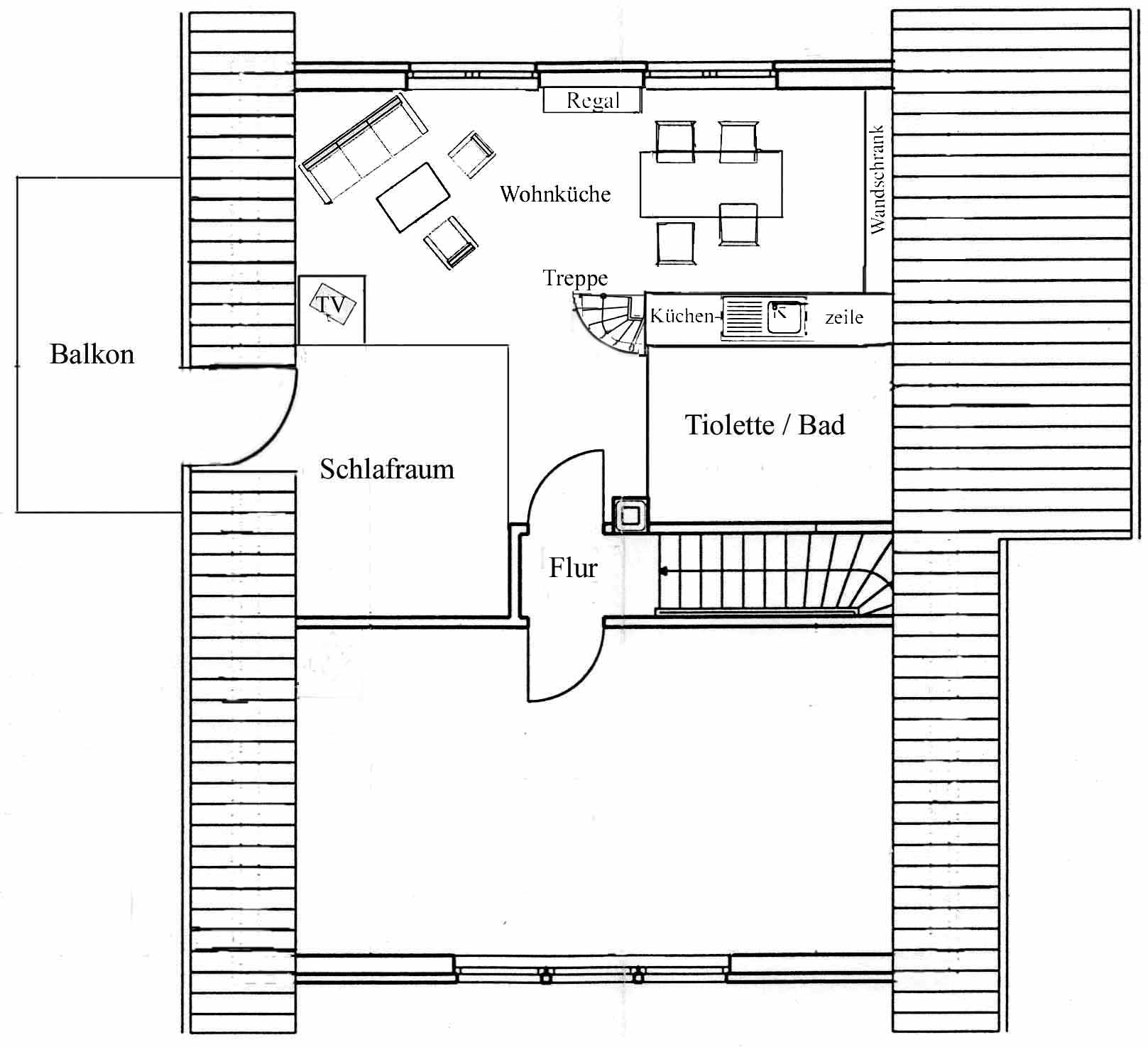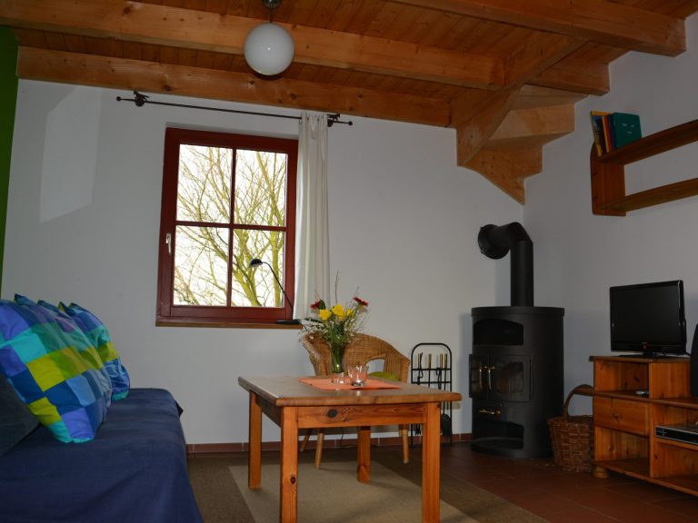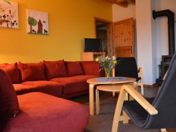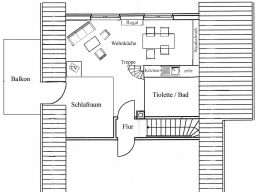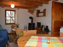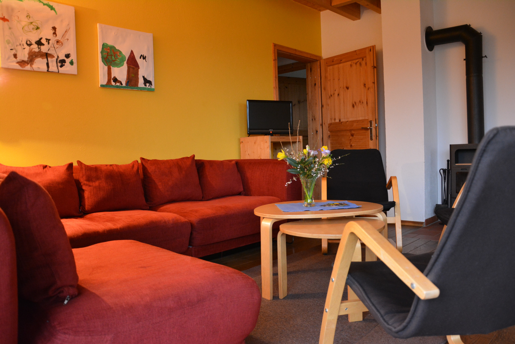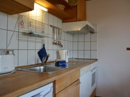 Eine gemütliche Ferienwohnung für 4 Personen. Genießen Sie die herrliche Aussicht beim Frühstück auf dem Balkon. Im separaten Schlafzimmer gibt es ein Doppelbett, zwei weitere Betten erreichen Sie über eine Platzsparwendeltreppe. Sie befinden sich auf dem Schlafboden über dem Wohnbereich. Für kleine Kinder und ältere Menschen sind diese Schlafplätze ungeeignet.